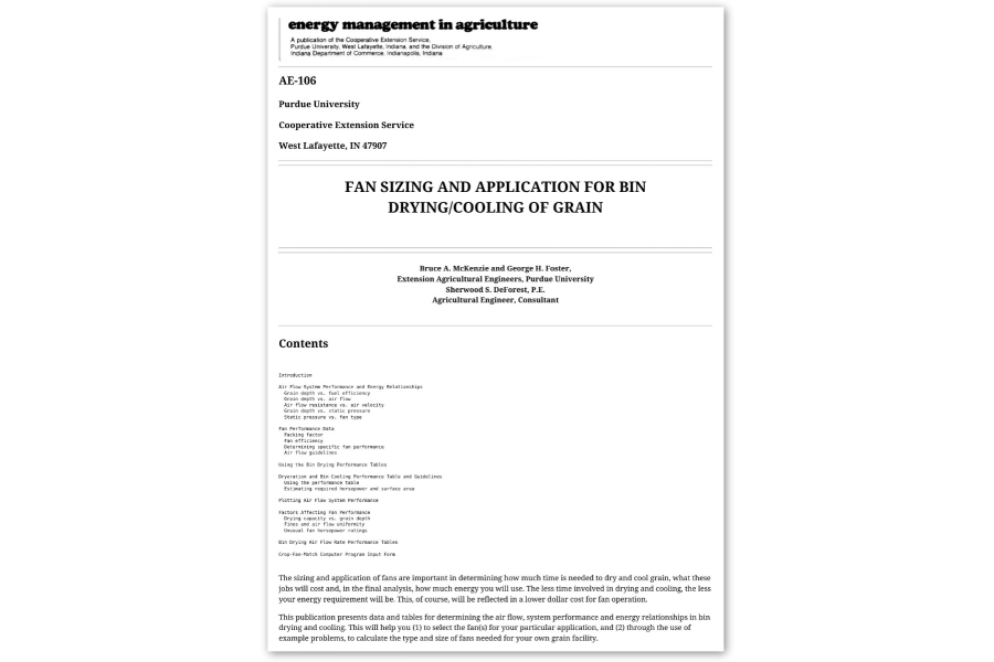 Fan Sizing and Application for Bin Drying/Cooling of Grain