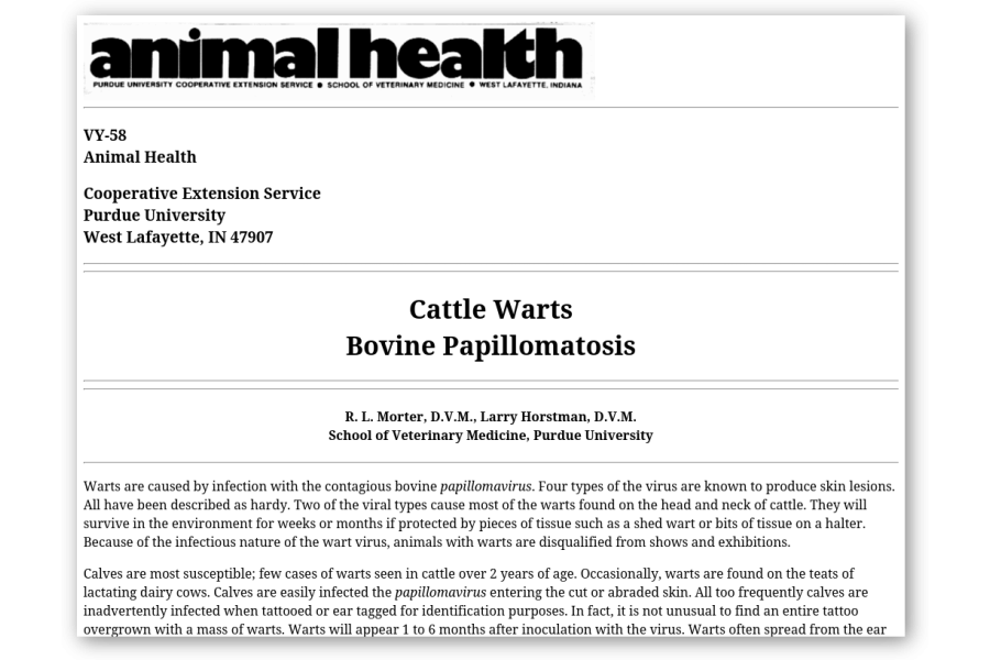 This publication discusses prevention and treatment of cattle warts.