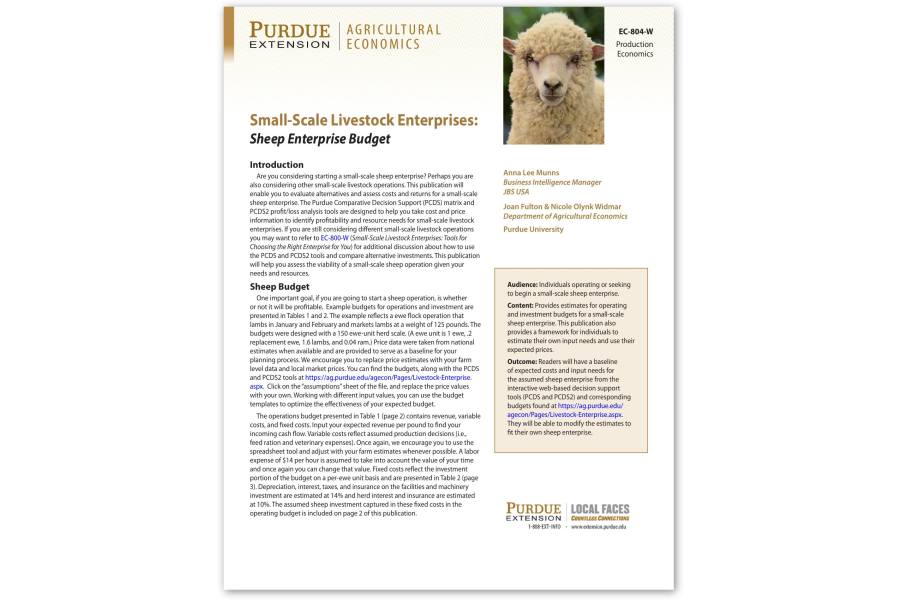 This 4-page publication explains how to use the Purdue Comparative Decision Support (PCDS) matrix and the PCDS2 profit/loss analysis tool to generate an enterprise budget for a small-scale sheep operation.